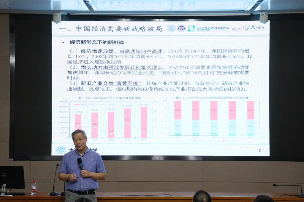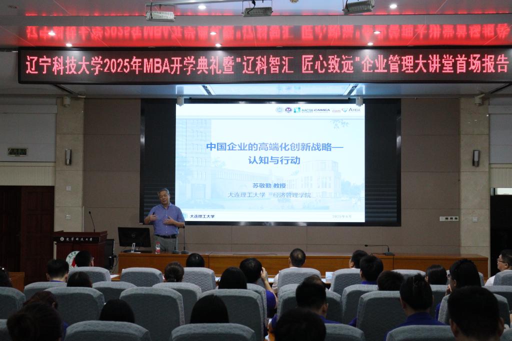 2025年8月30日,开云网页版·官方版在线登入工商管理学院迎来了一场思想盛宴——MBA2025级开学典礼暨“辽科智汇·匠心致远”企业管理大讲堂正式启动。首场报告特邀国家级领军人才、大连理工大学苏敬勤教授作题为《中国企业的高端化战略—从认知到行动》的专题演讲。讲座由工商管理学院院长金玉然教授主持,2025级全体MBA学员及部分教师参与本次论坛。